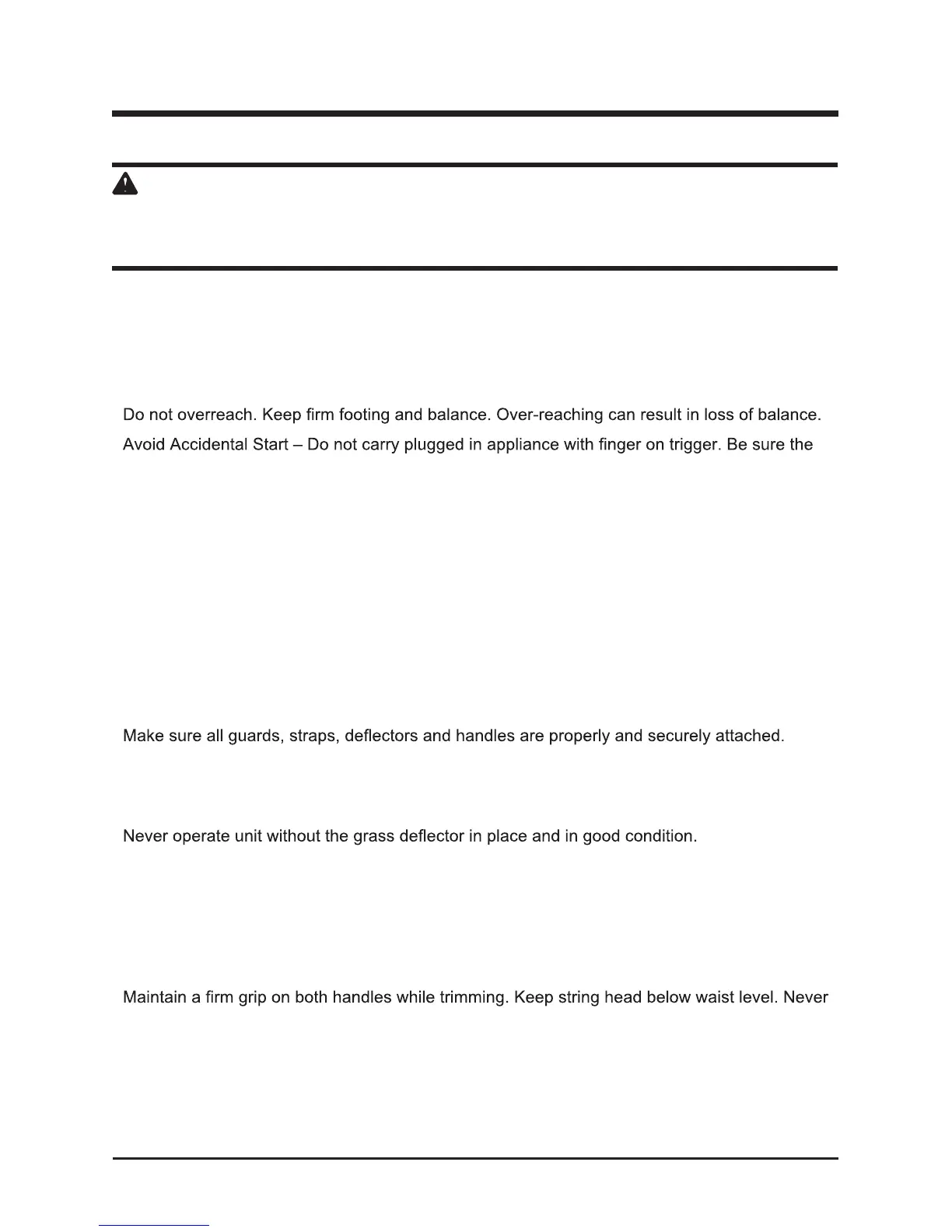 • Maintain appliance with care - Replace string head if cracked, chipped, or damaged in any way.