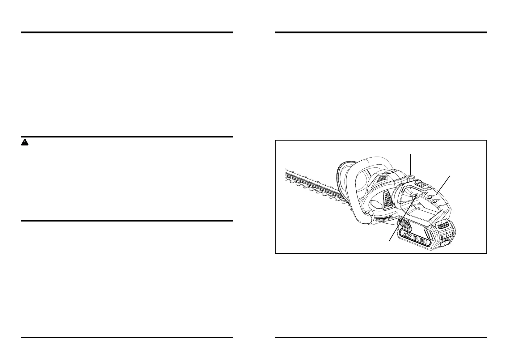 • Do not use if the blade assembly is damaged or bent. Take to a qualied person to