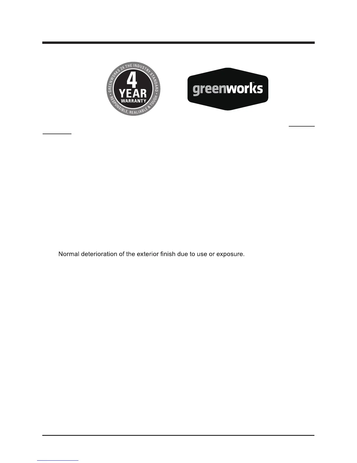 GREENWORKS™, at its own discretion will repair or replace any and all parts found to be
