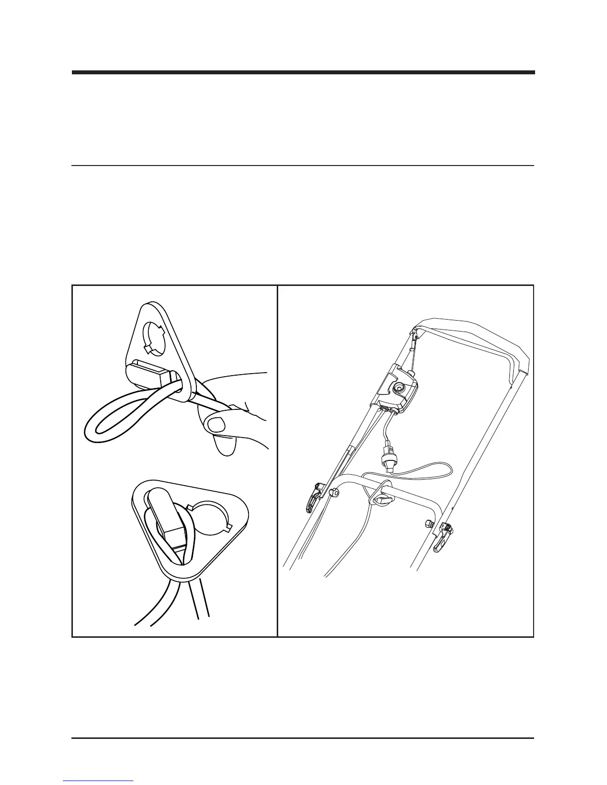 disconnecting from the power cord while the mower is in use. The cord retainer hangs from the