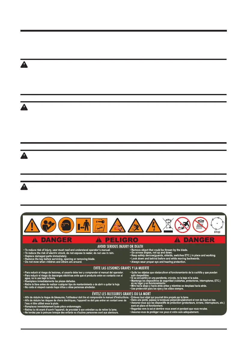 operator can result in serious injury. This mower is capable of amputating body parts and