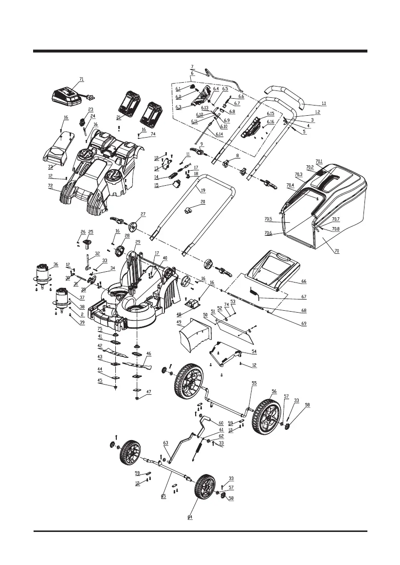 GreenWorks 25282 - EXPLODED VIEW; Mower Components Diagram