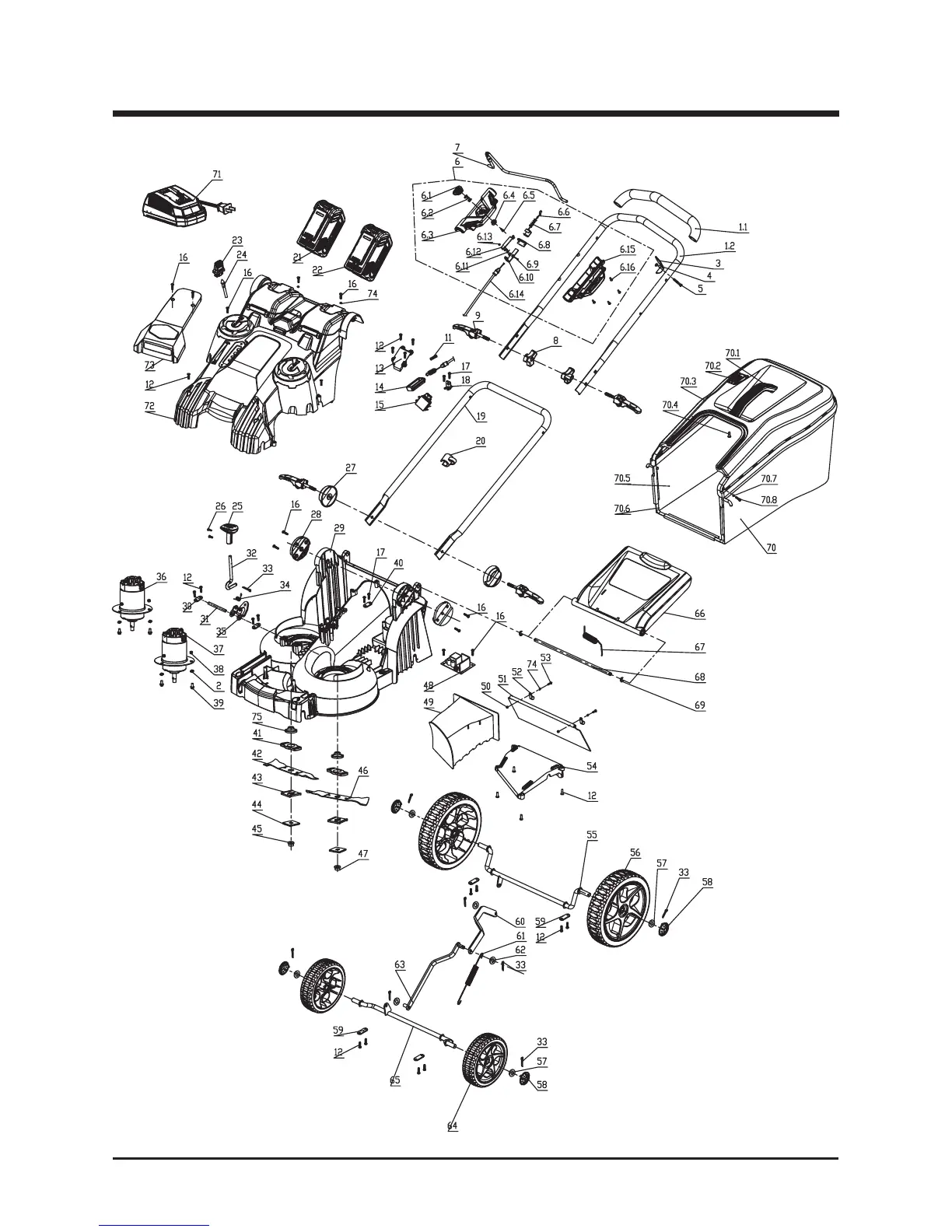 GreenWorks 25302 - Exploded View Parts Diagram; Mower Parts Breakdown