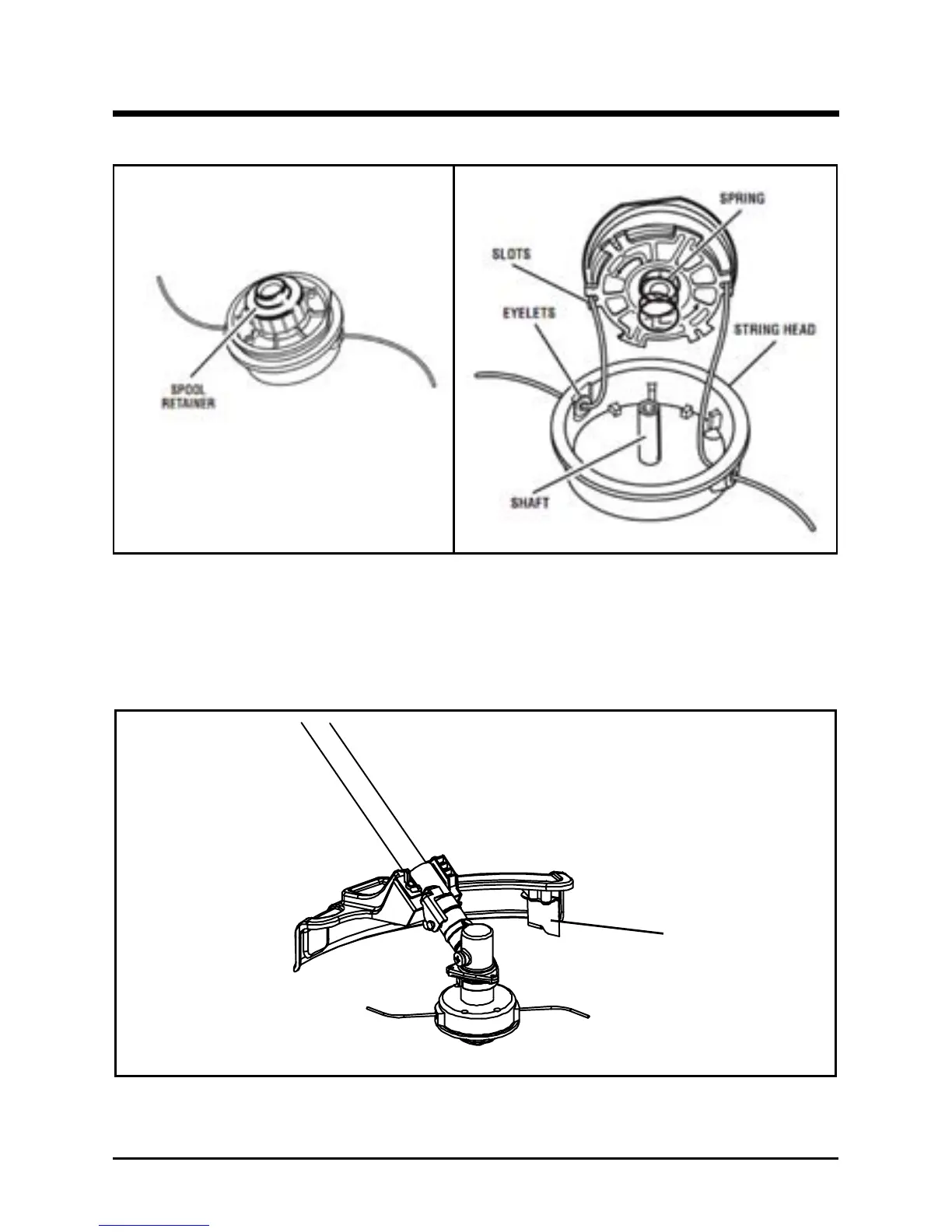 The trimmer is equipped with a line trimming cut-off blade on the grass deector. Replace the
