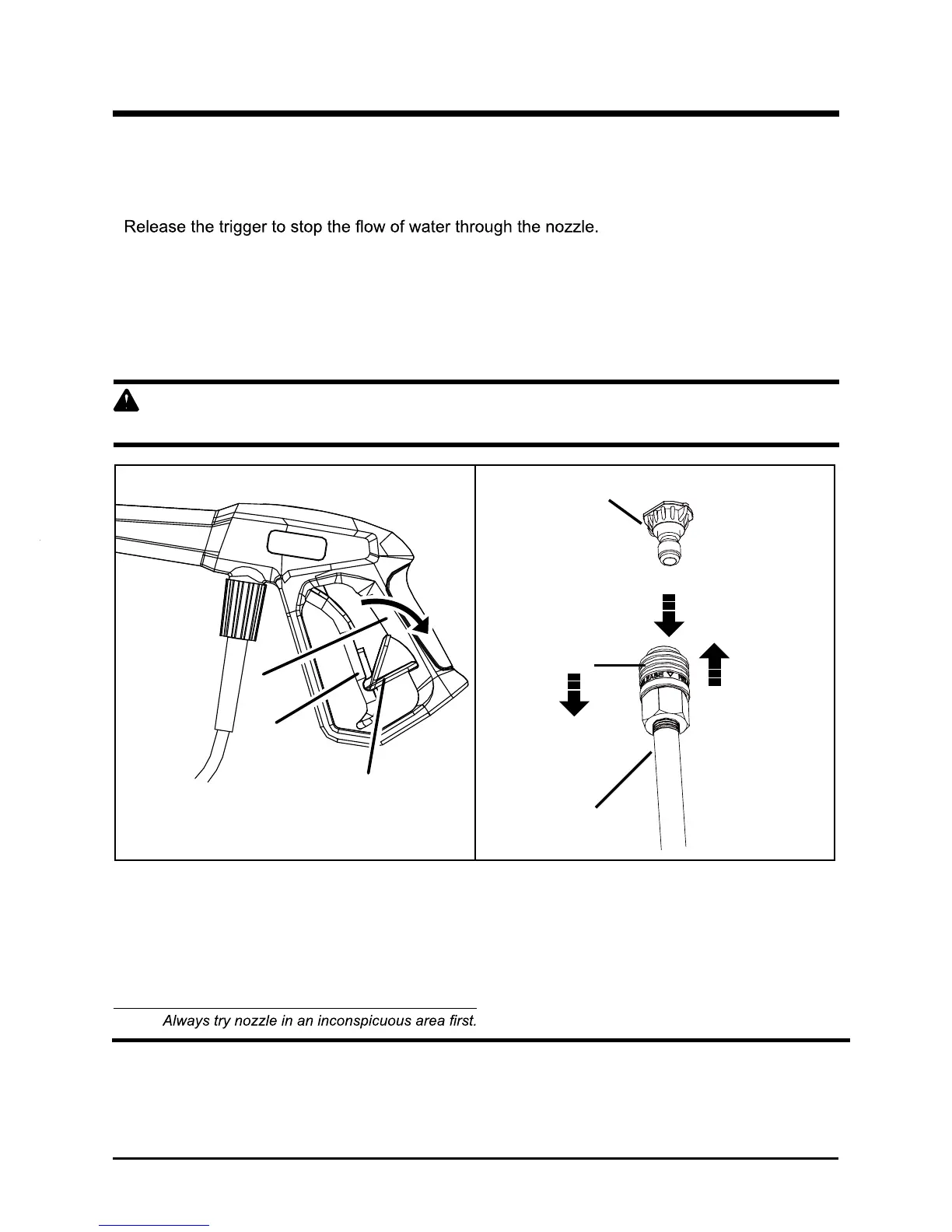 NEVER change nozzles without engaging the lock-out on the trigger handle and NEVER point the