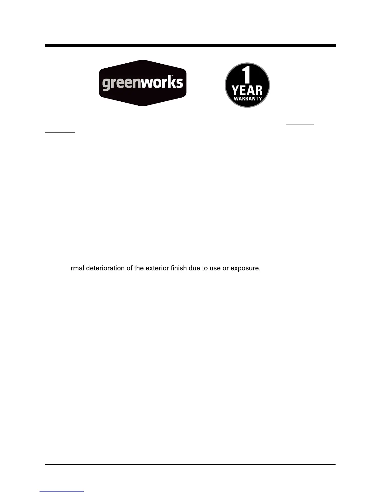 GREENWORKS™ hereby warranties this product, to the original purchaser with proof of