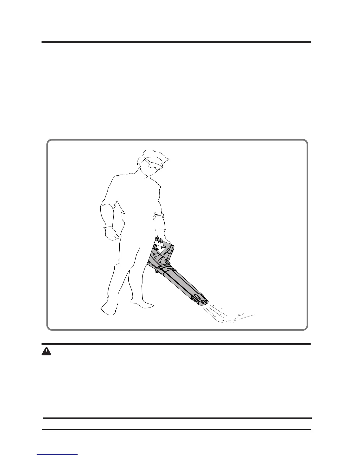 Hold the blower rmly. Sweep from side to side with the nozzle several inches above the