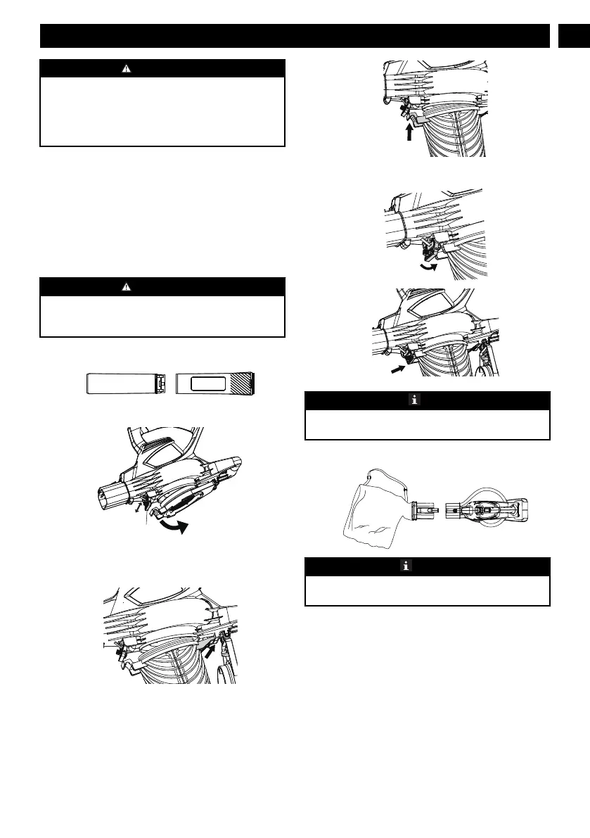7. Put the bag adaptor into the blower outlet. Lock the