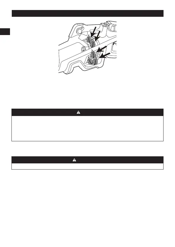 2. Si nécessaire, arrêtez le produit et retirez les feuilles ou débris de l’évent d’admission d'air.