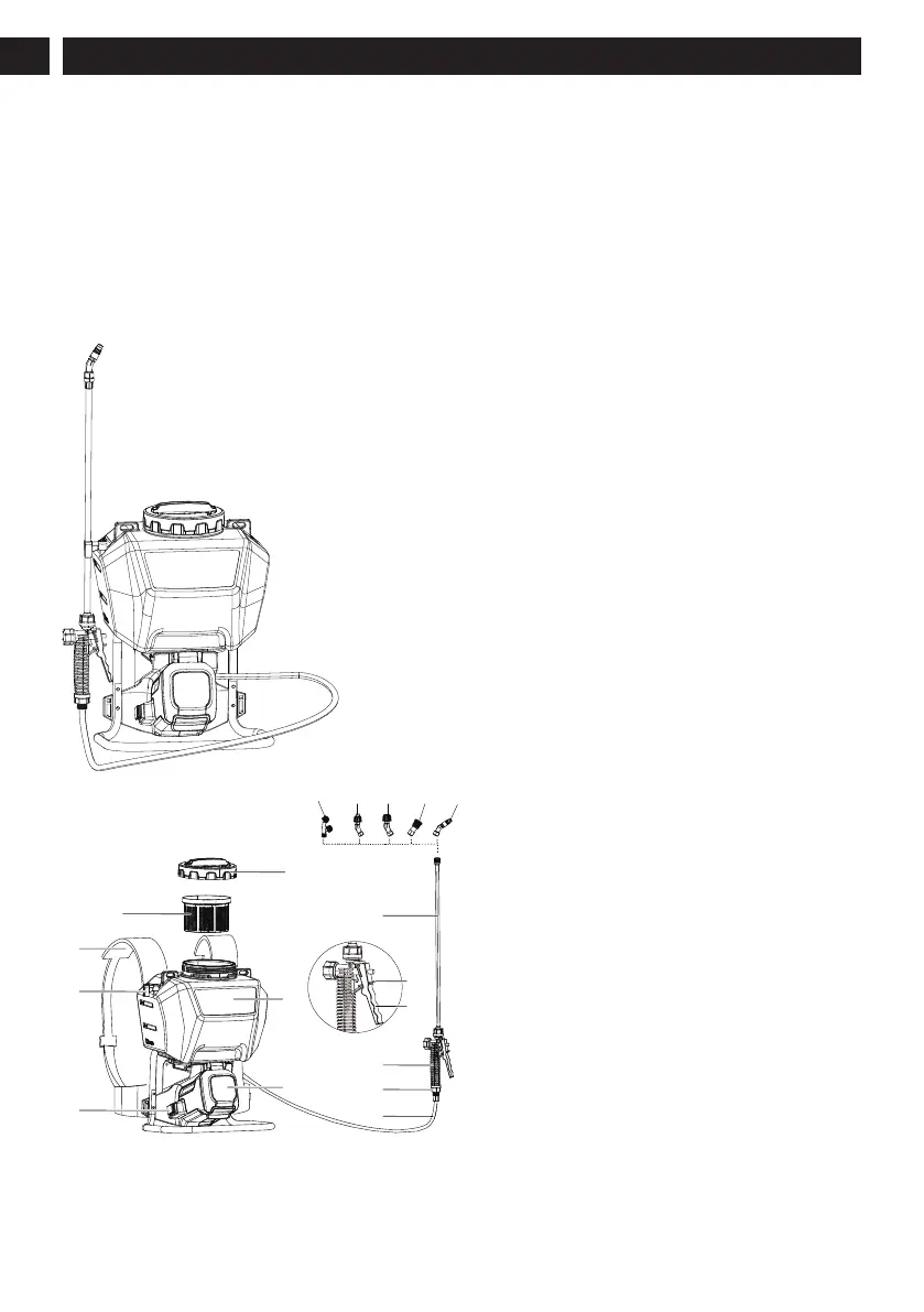 • Do not place or store backpack sprayer where it can fall