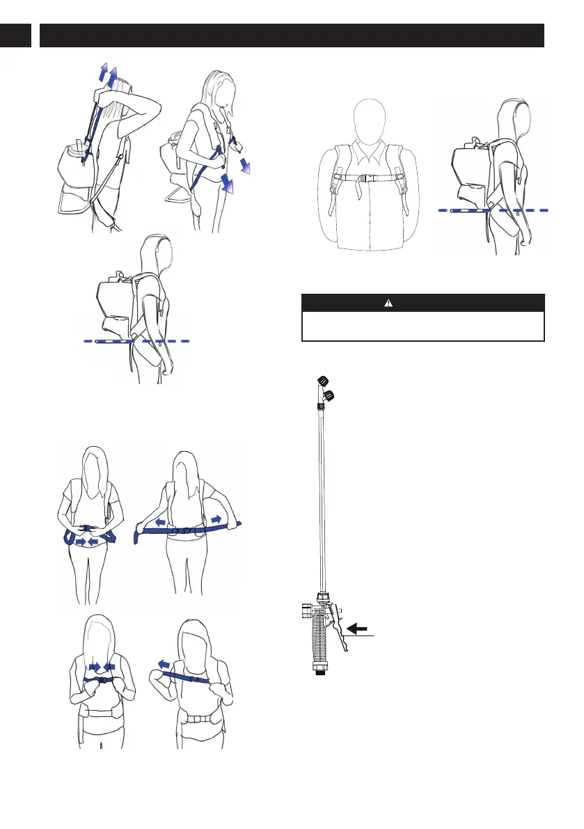 8. The sprayer should sit above your waist and the tank