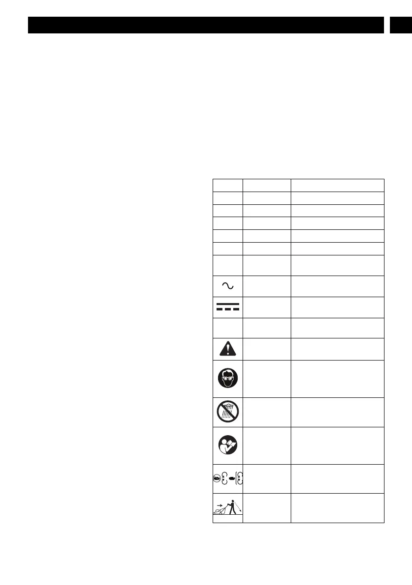 Some of the following symbols may be used on this mower.