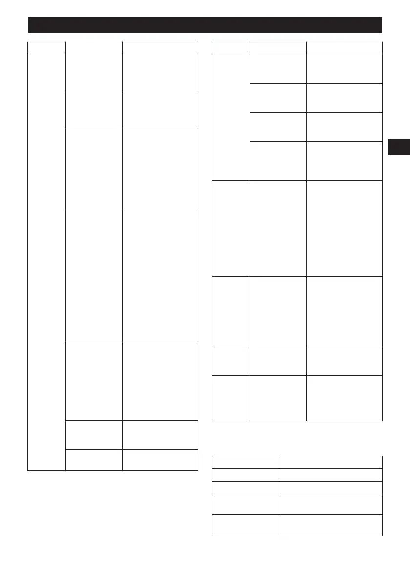 Problème Cause possible Solution