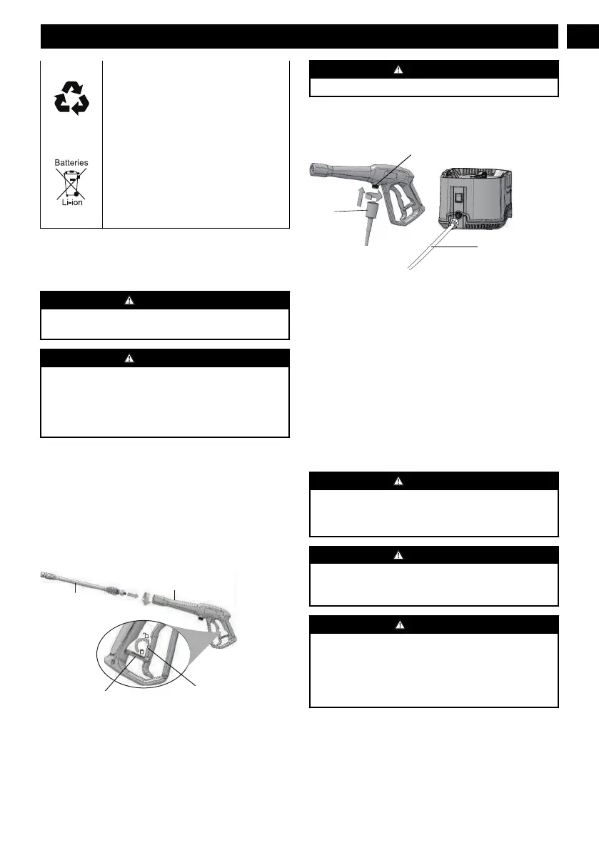 1. Push the end of the spray wand (8) into the gun handle.