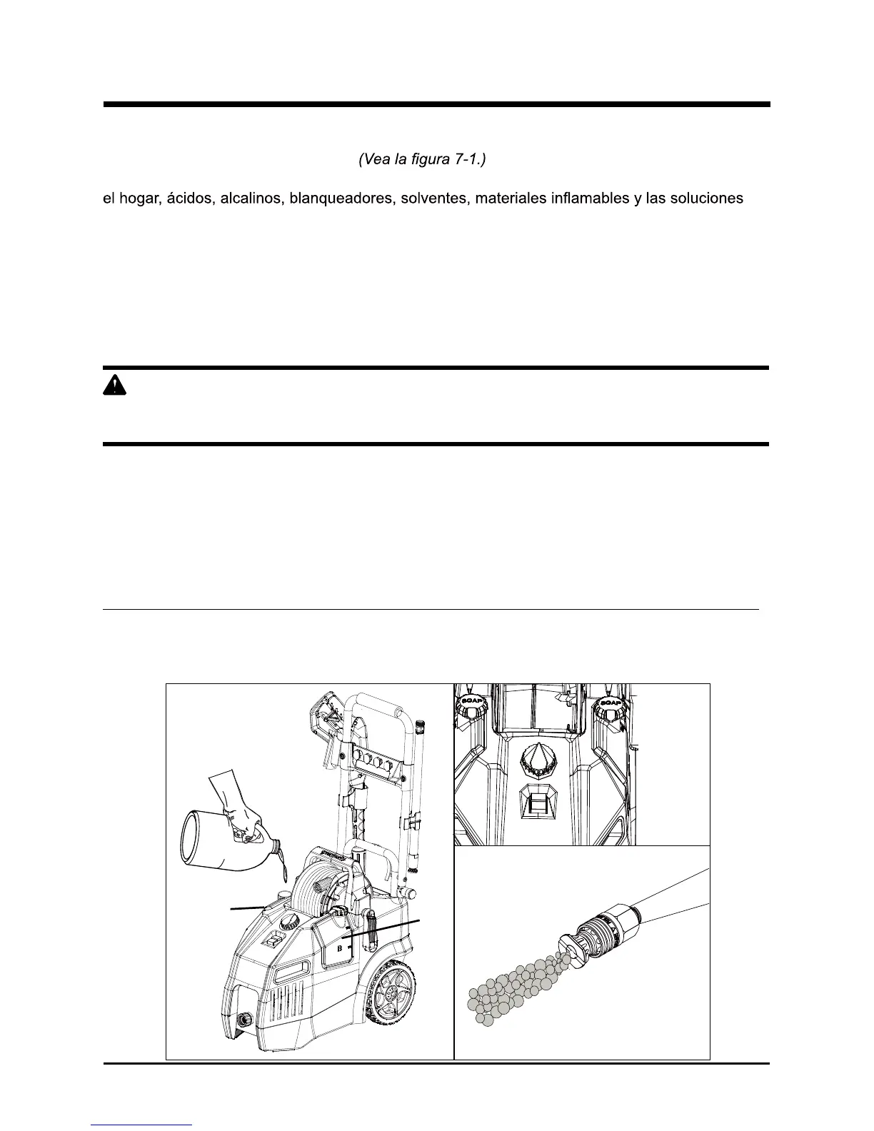 Utilice detergentes aprobados solamente para lavadoras de presión. No utilice blanqueador, cloro