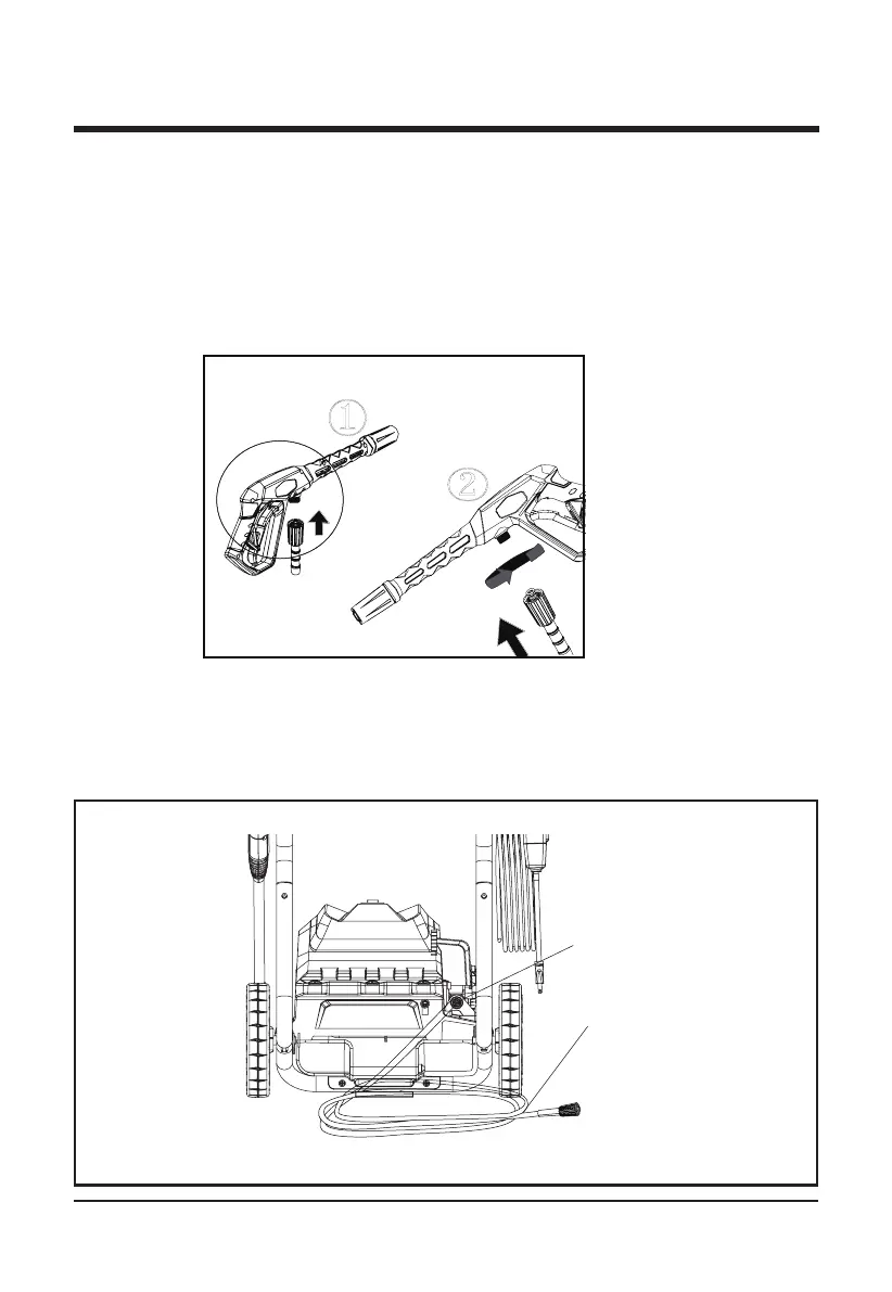 • Alinear la manguera de presión con el mango del gatillo y empuje hacia arriba y en posición.