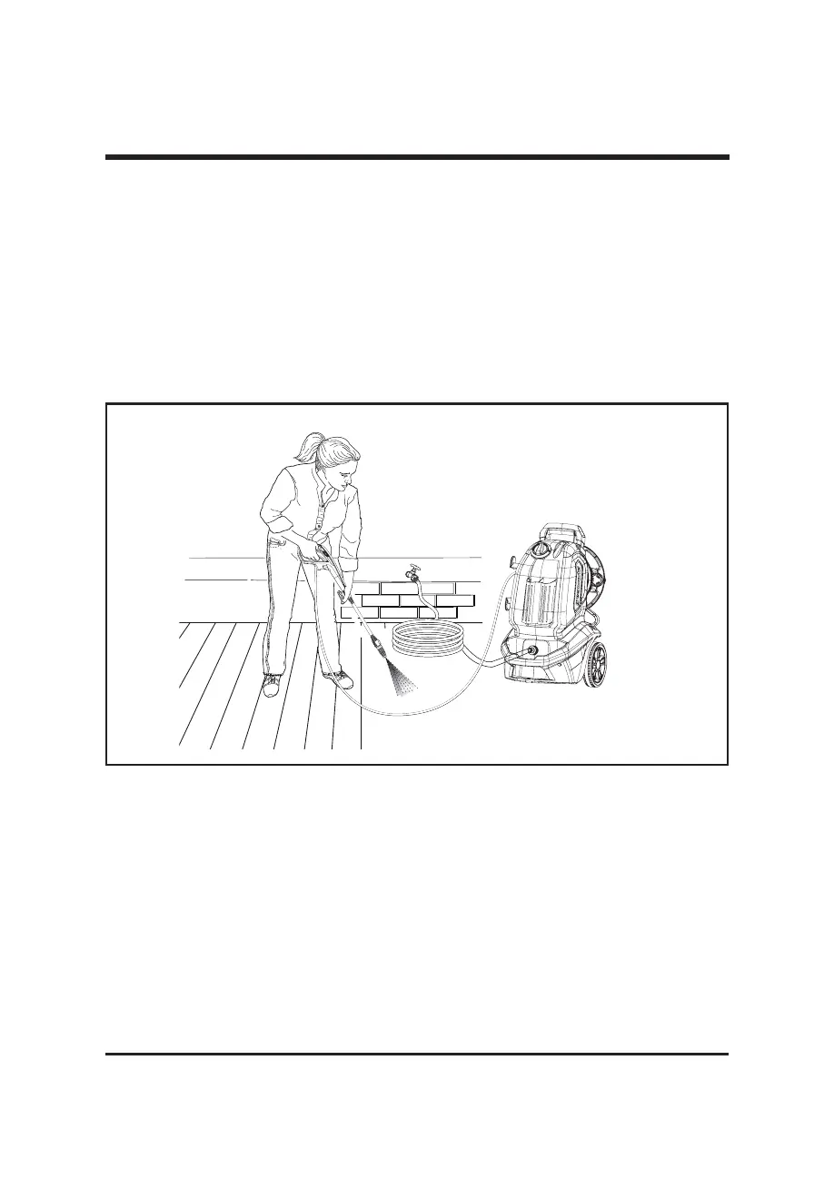 • Apague la lavadora a presión. Apunte la punta de pulverización hacia un lugar seguro y tire del