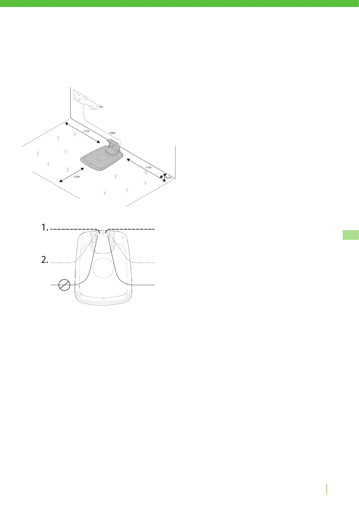 • Med fritt utrymme minst 3m framför den och 1m åt varje sida
