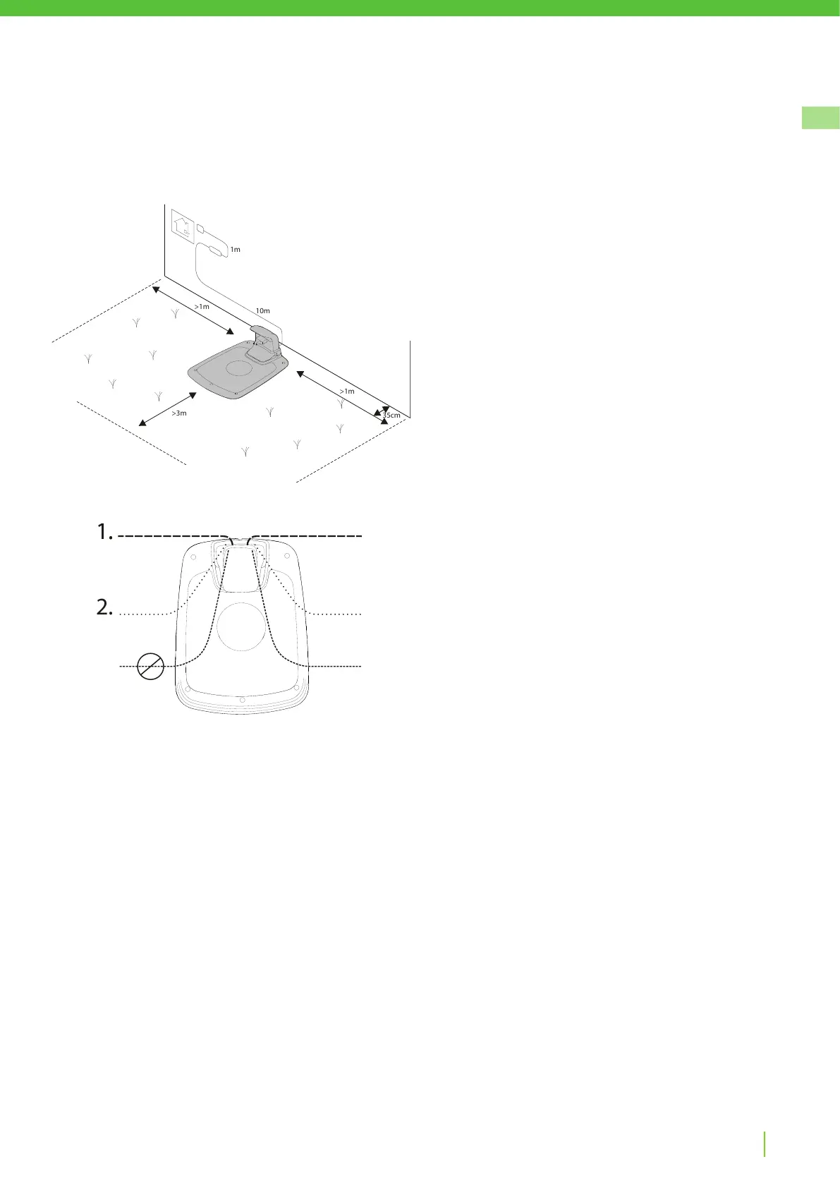 • Mit mindestens 3m freiem Platz zur Vorderseite und je 1m zu