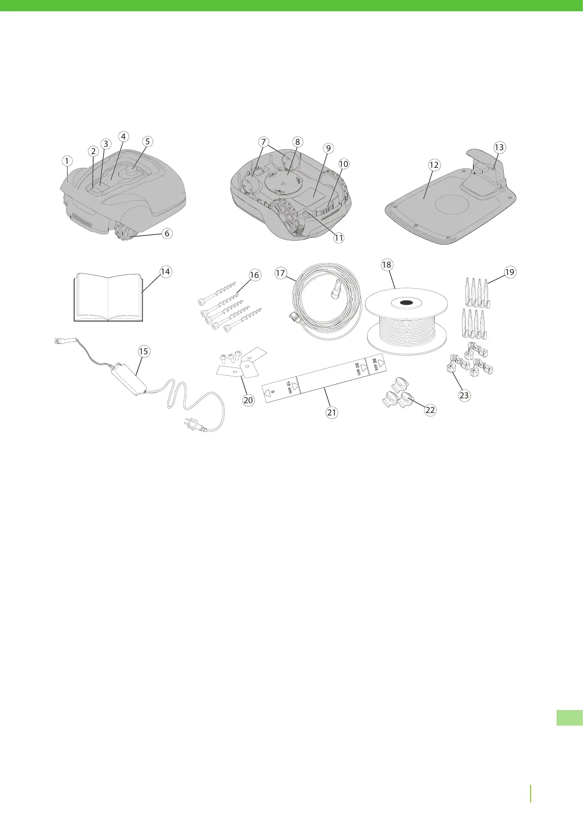 Scoateți robotul și materialele de instalare din cutie. Asigurați-vă că toate componentele ilustrate în Figura 1
