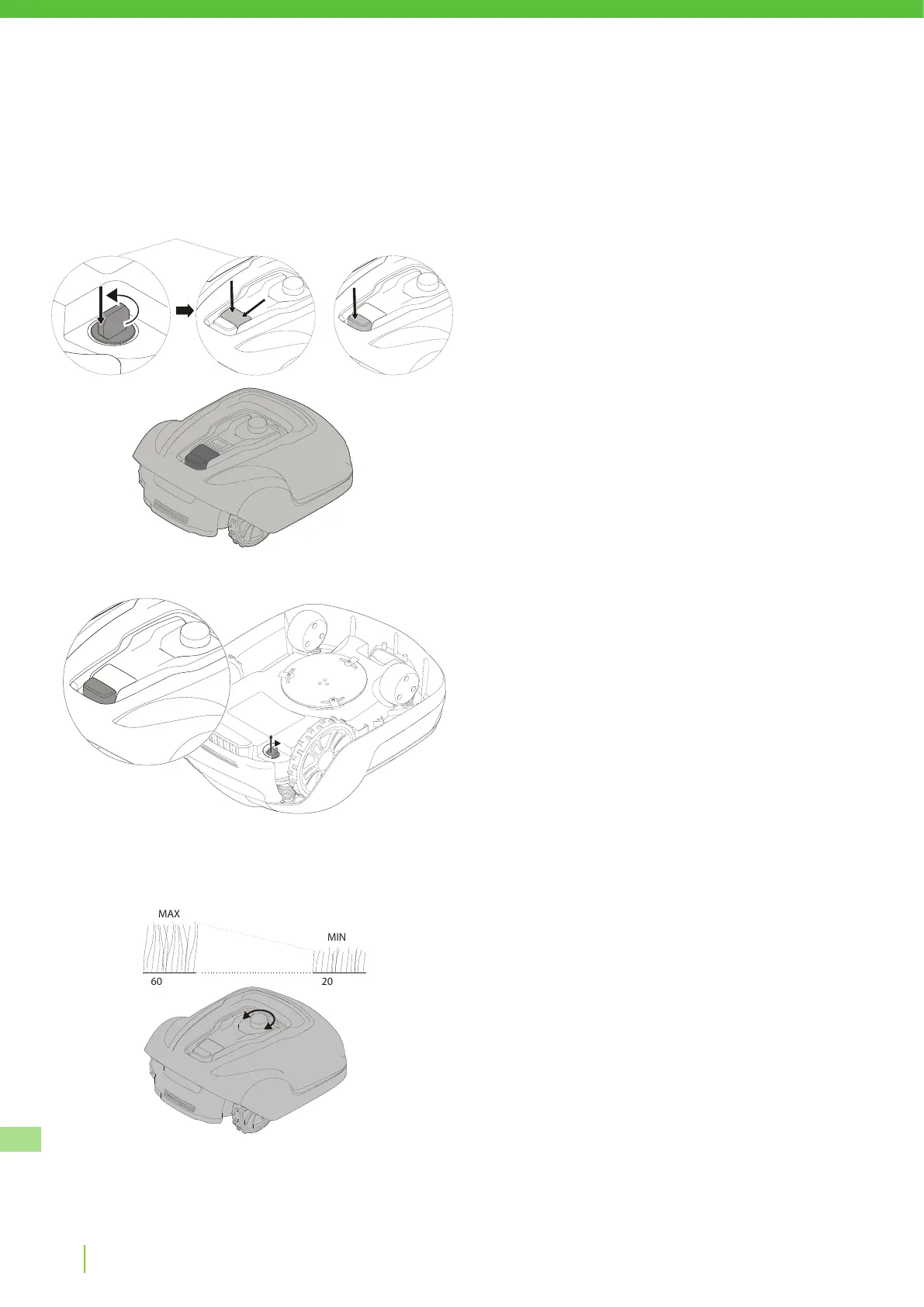 Înălţimea de tăiere pentru robot poate fi reglată între 20 mm și 60 mm.