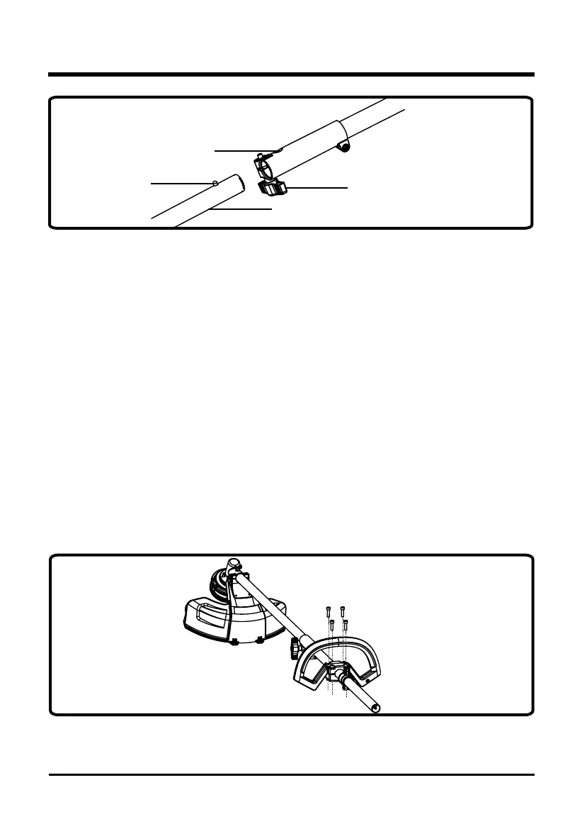 • Press the auxiliary handle onto the power head shaft so that the handle is angled toward the