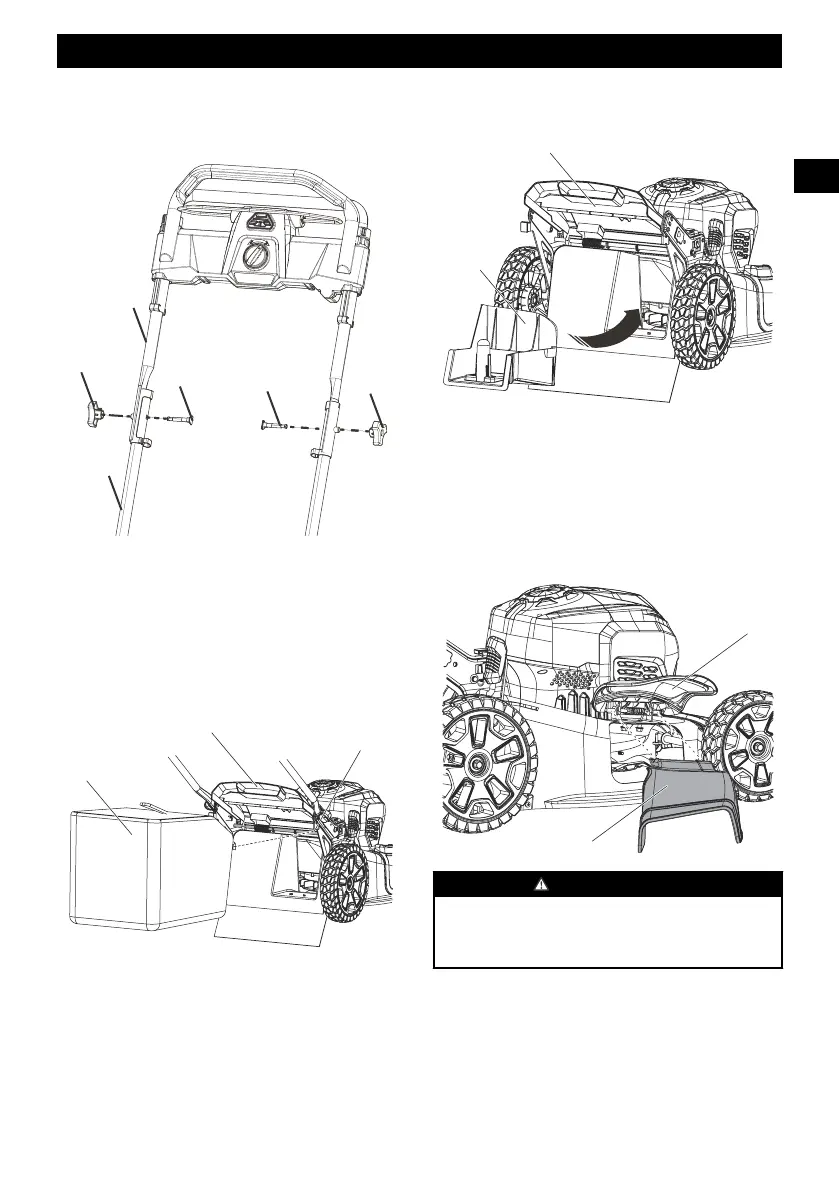 GreenWorks LMF415 - Instalación del Asa Superior; Instalación del Conducto de Descarga Lateral; Instalación del Recogehierba; Instalación del Tapón de Mulching