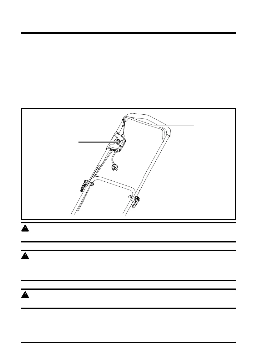 • Pull the bail switch (2) upward to the handle to start the mower and release the button (1).