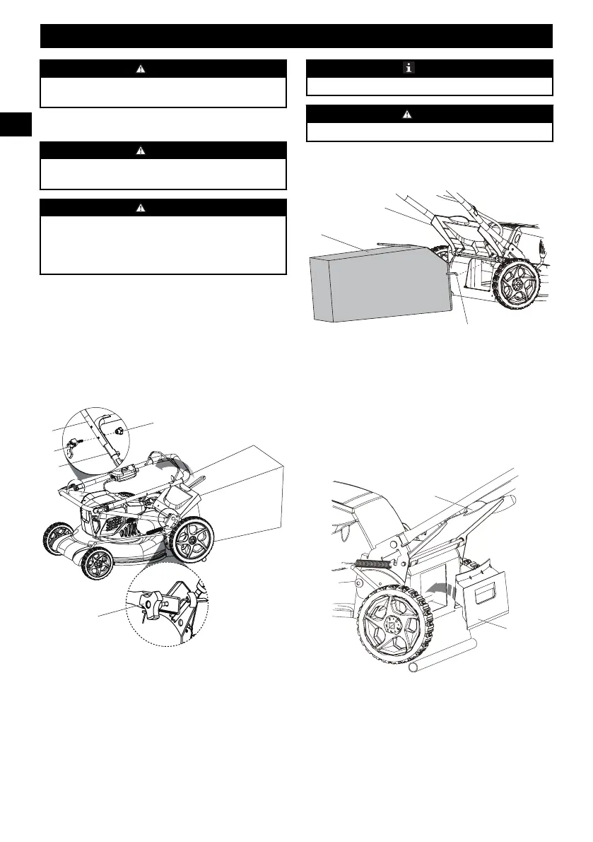 3. Sostenga el recogehierba (8) por el asa y enganche los