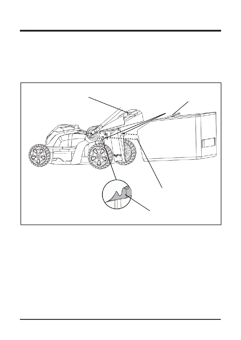 • Lift the grass catcher by its handle (2) and place under the chute cover so that the hooks (3)