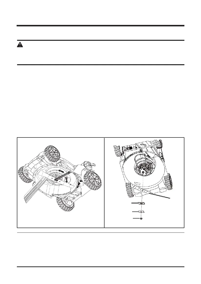 • To re-install the blade, position the blade with the cutting edges toward the ground. Assemble