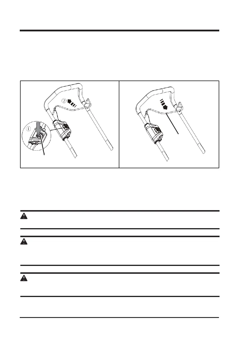 • Tire el interruptor de agarre (2) hacia el mango y suelte el botón para arrancar la podadora.