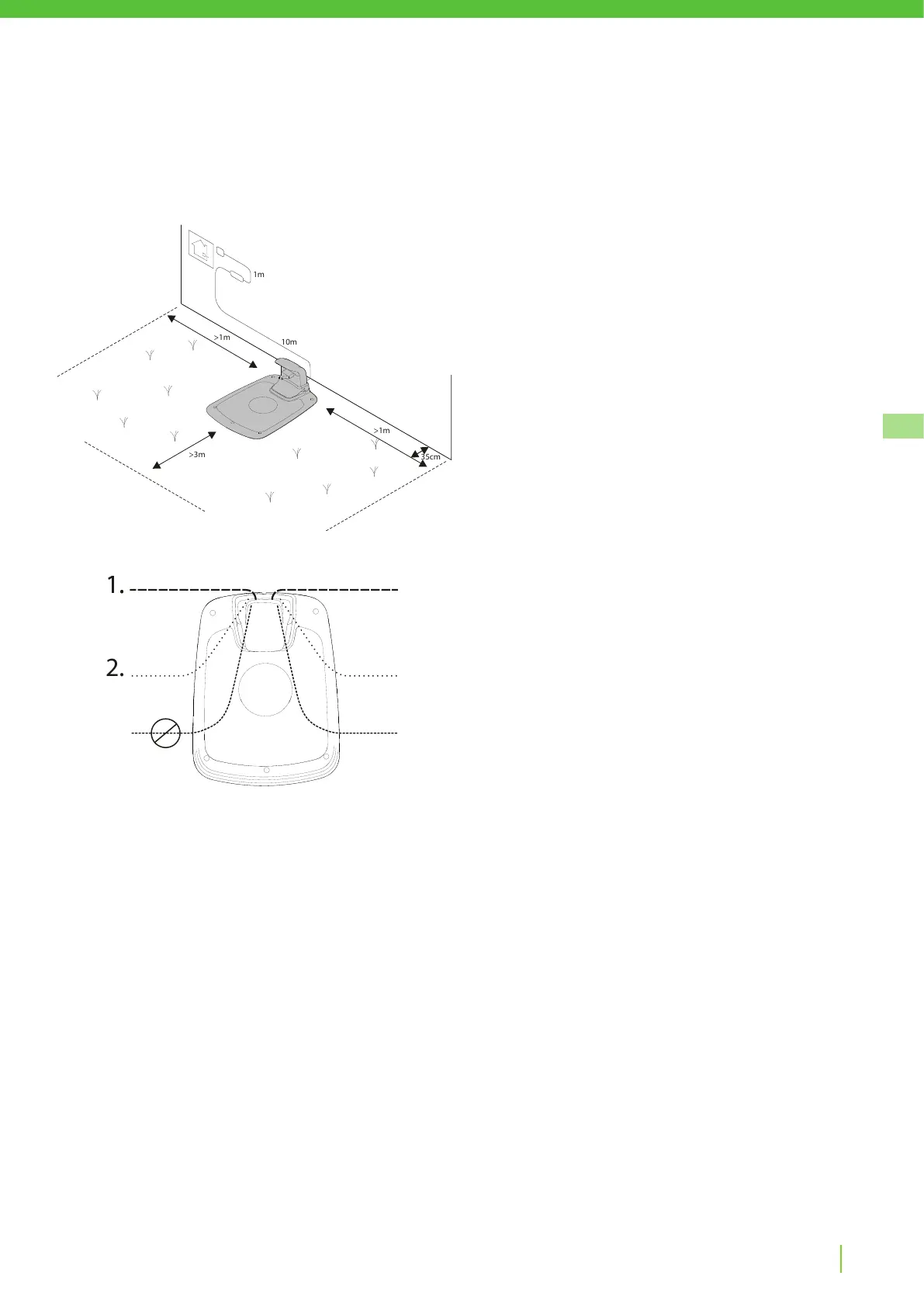 • Optie 1 - Het laadstation bevindt zich volledig in het maaigebied.