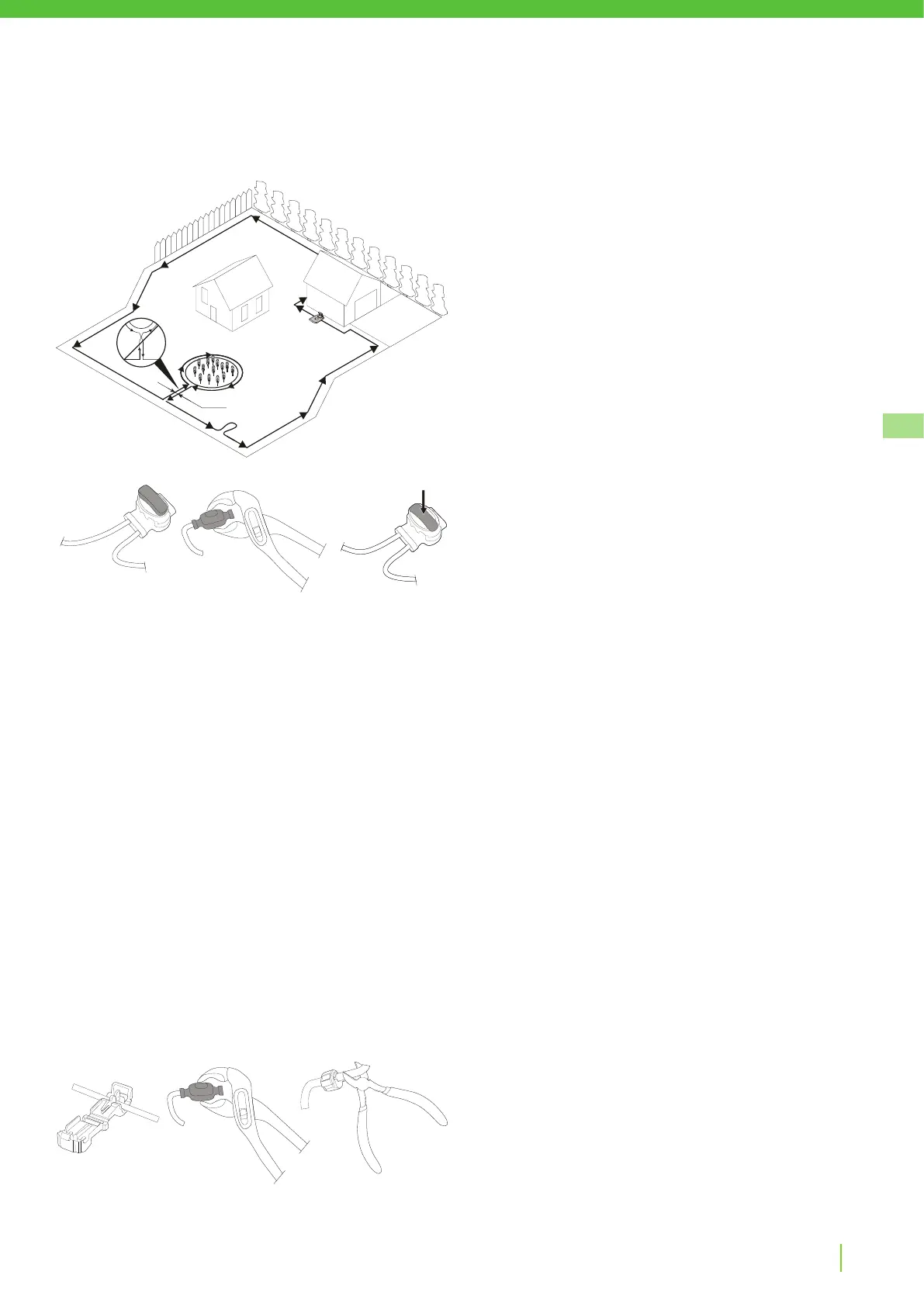 • Stop de begrenzingsdraad 1—20 cm in de grond.