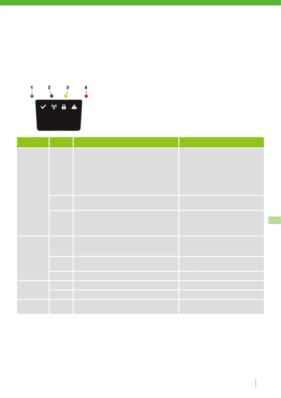 4. Fejl (rød) Blinker Plæneklipper stoppet med fejl Undersøg årsagen til fejlen, og genstart ved at