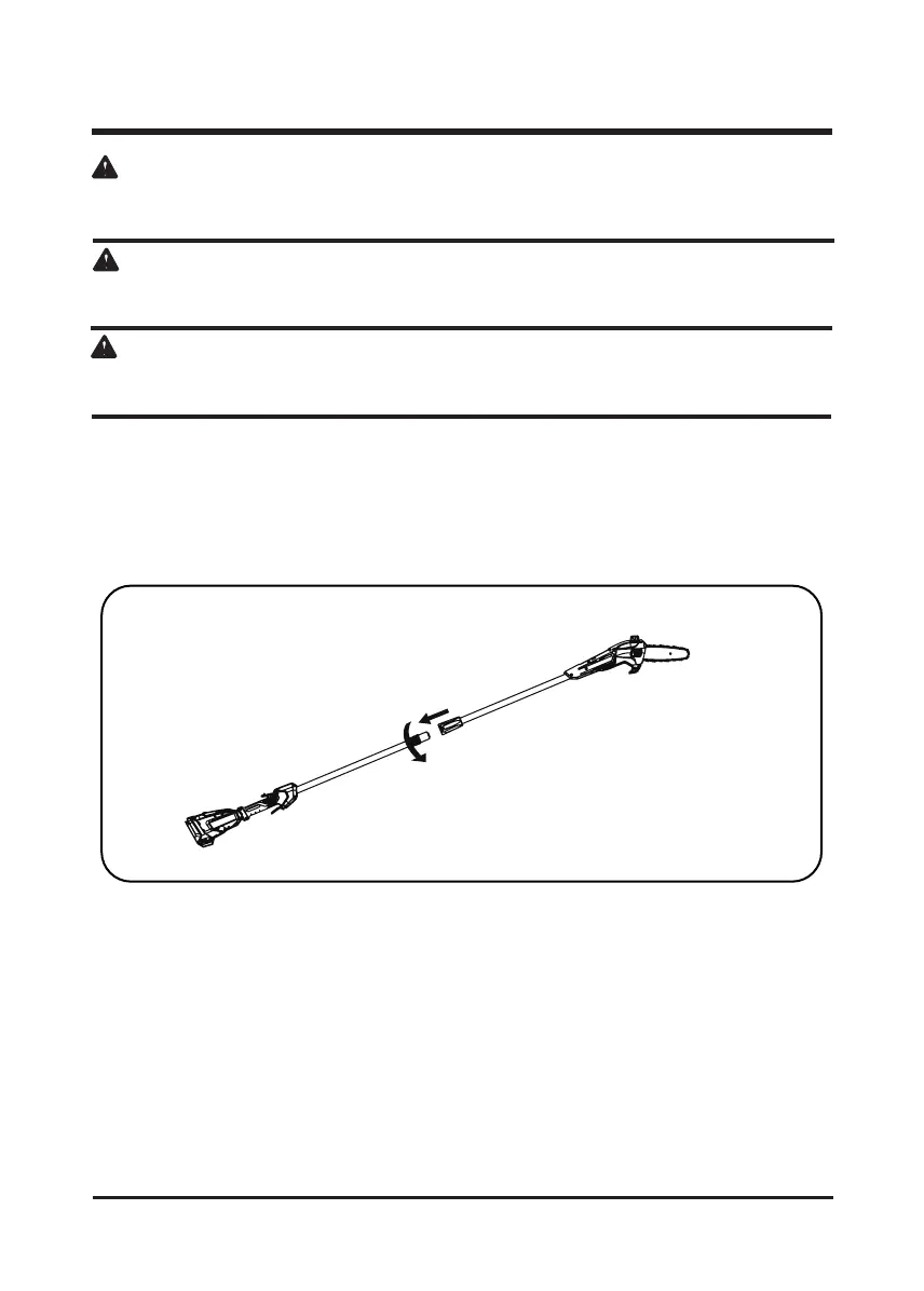 The maximum reach can be achieved by tting the extension pole between the polesaw handle