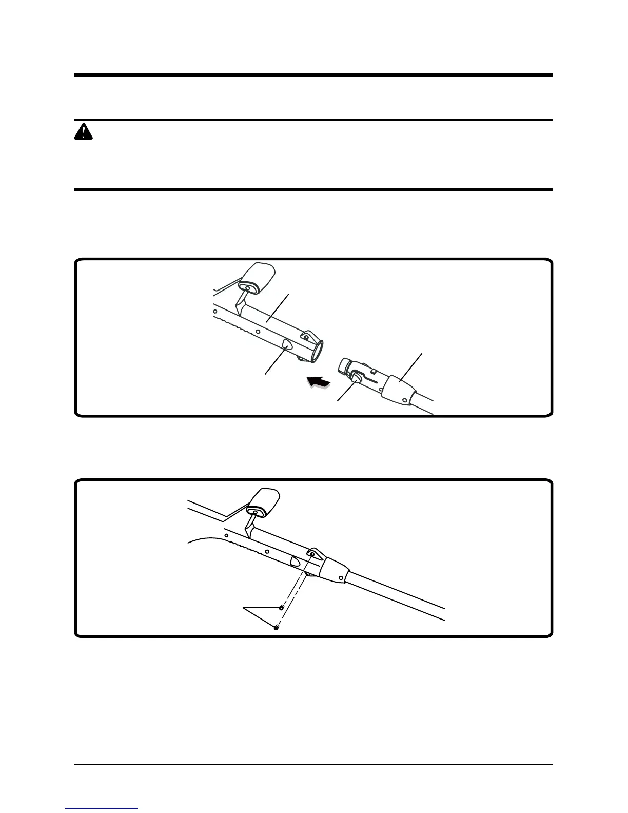 3. Slide the lower shaft into the upper shaft until the rotating handle latches engage in the