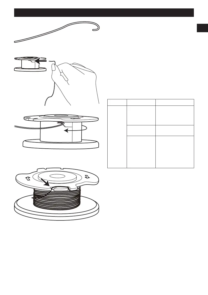 3. Insérez la ligne dans le trou d’ancrage de la bobine.