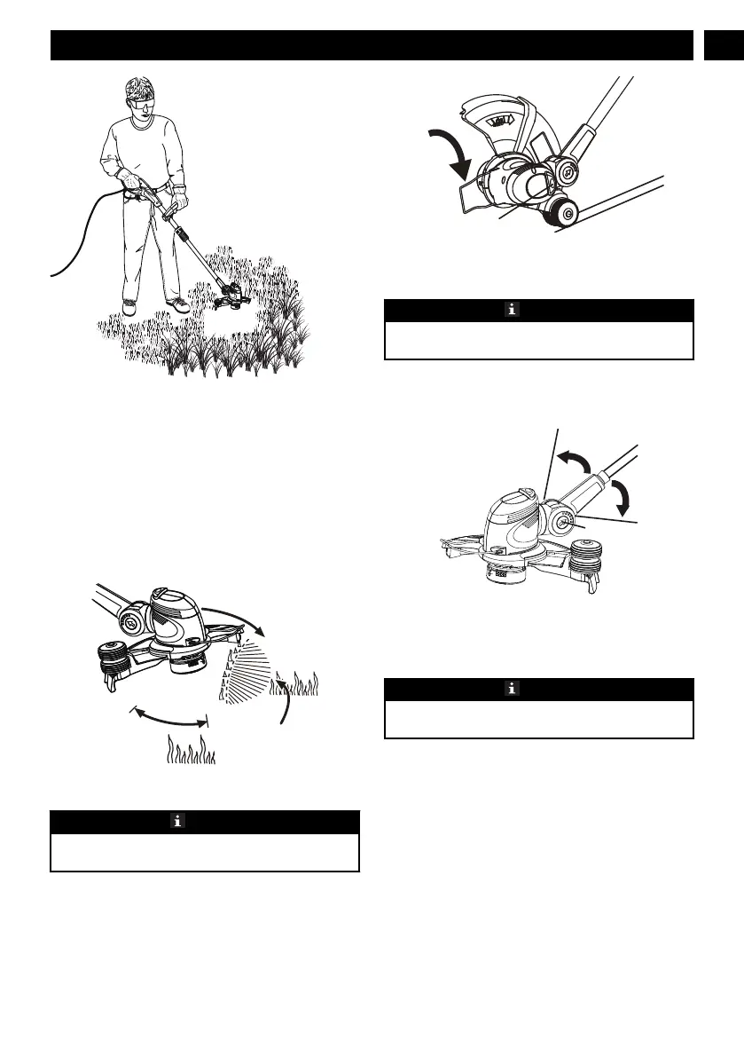 • Do not force the trimmer head into uncut grass.