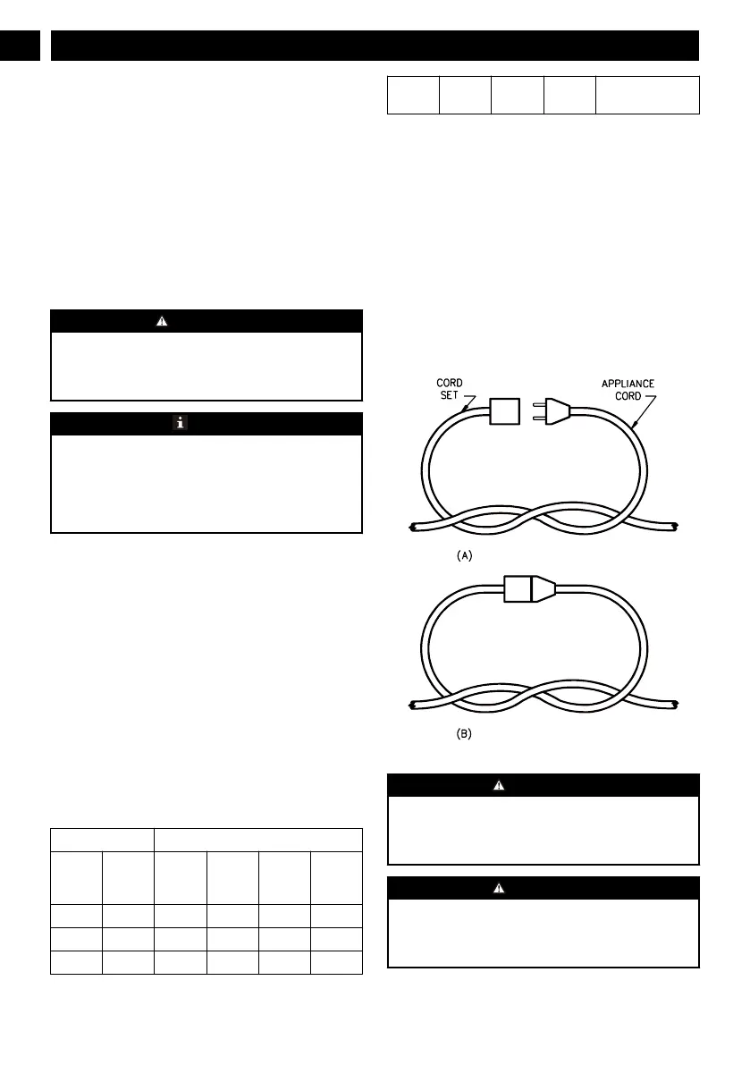 MINIMUM GAUGE FOR EXTENSION CORDS (AWG)