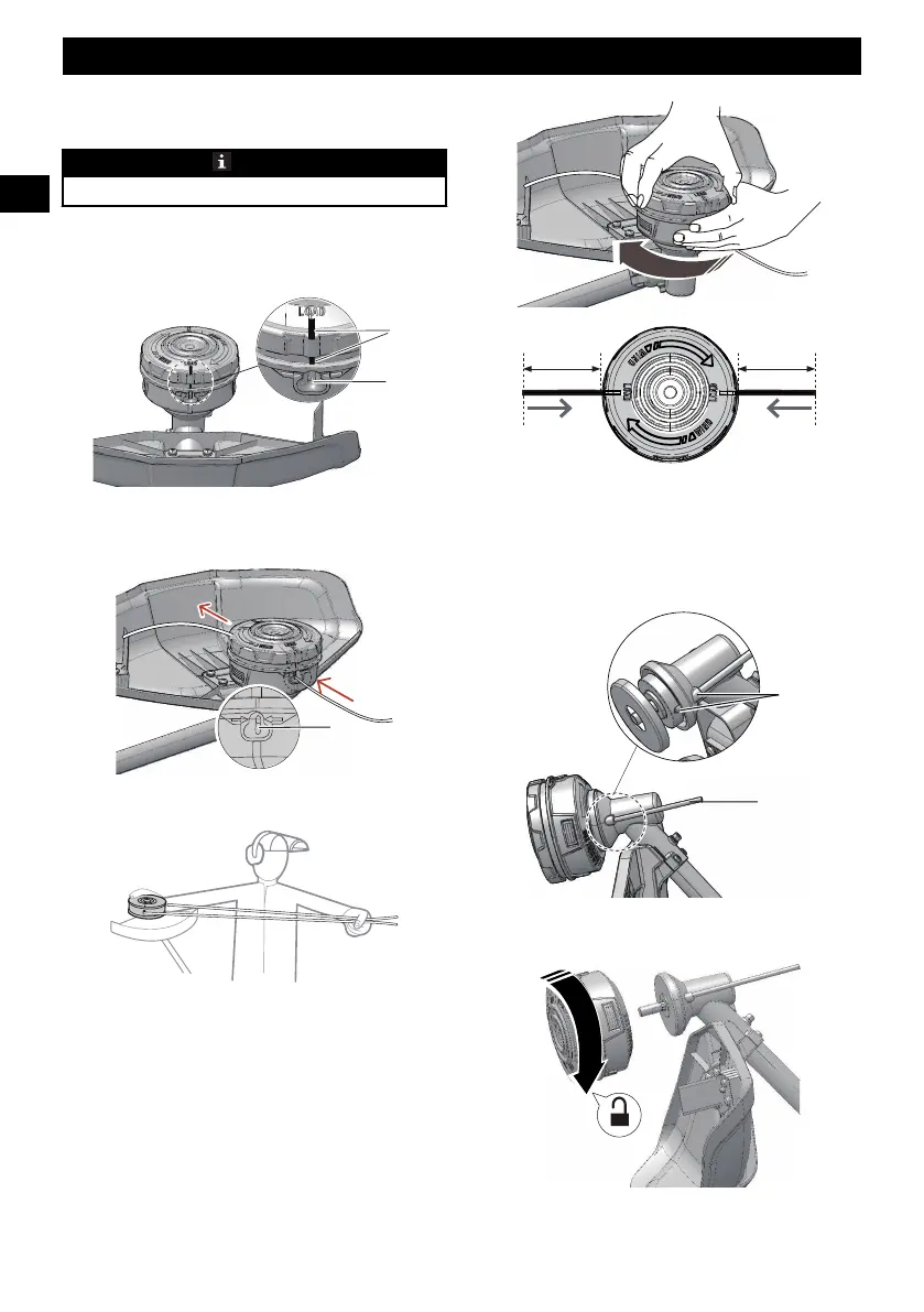 dirección de la flecha, para enrollar el hilo de corte en el