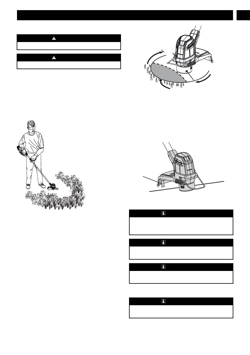 • Do not force the trimmer head into uncut grass.