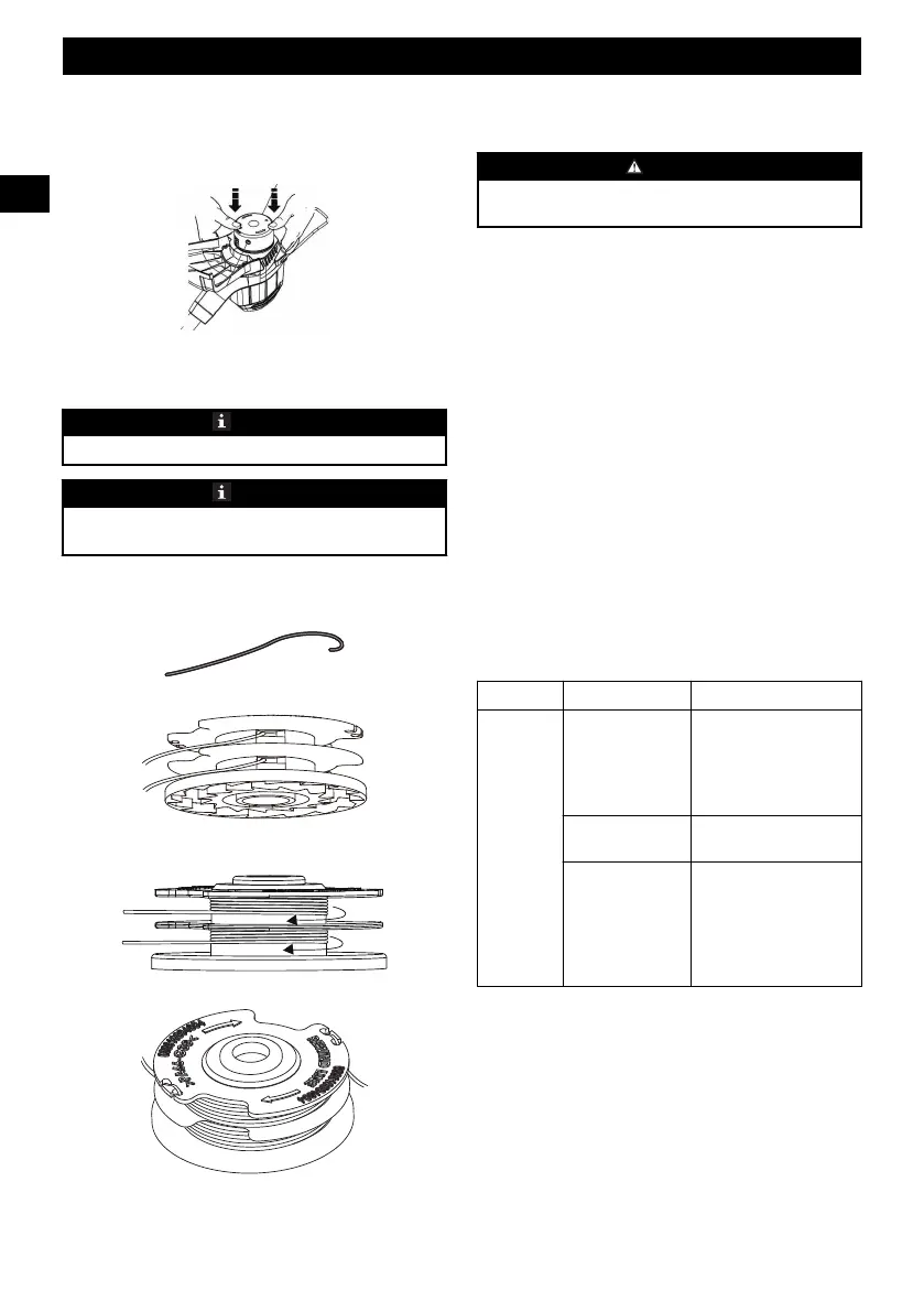 6. No enrolle el hilo de corte más allá del borde del carrete.
