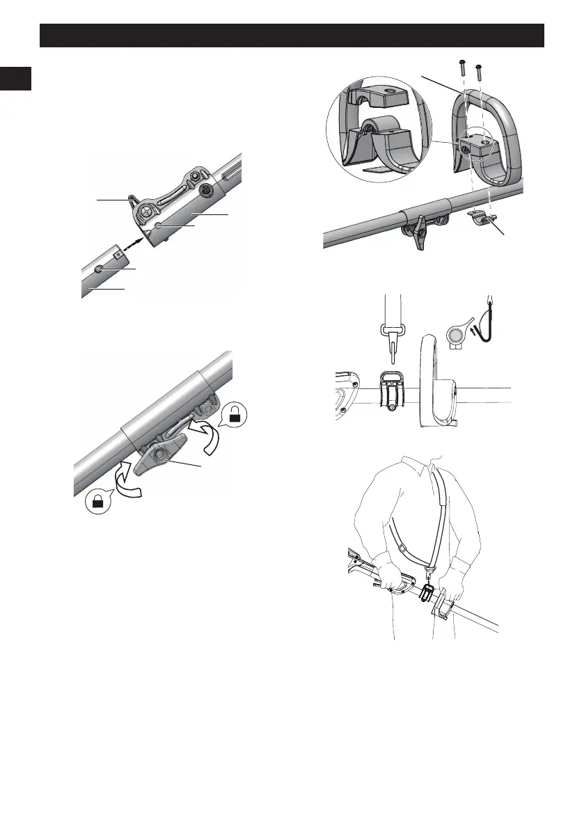 2. Attachez la poignée auxiliaire (6) et abaissez la bride (15)