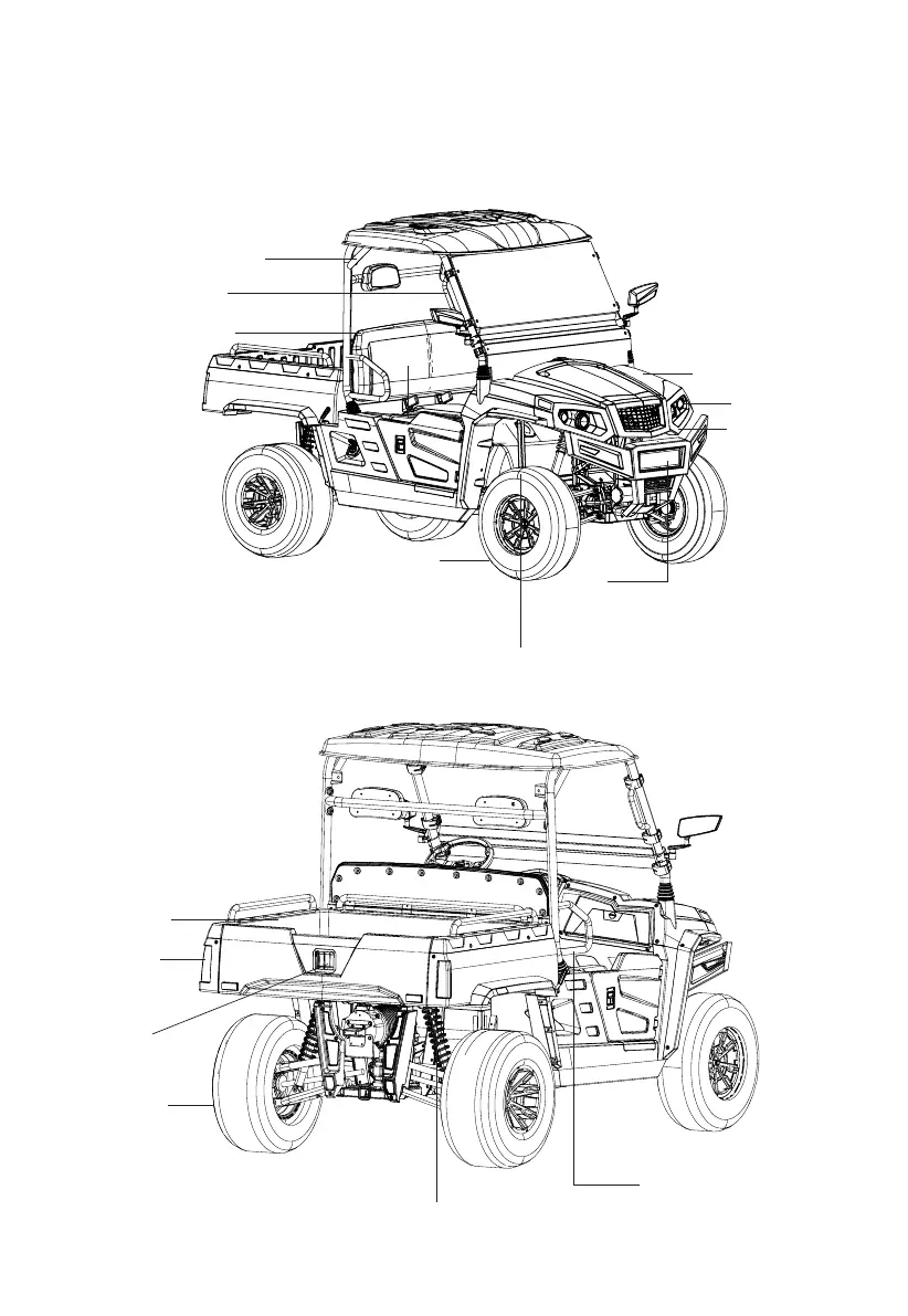 GreenWorks UTV800 - FEATURES AND CONTROLS; Component Locations