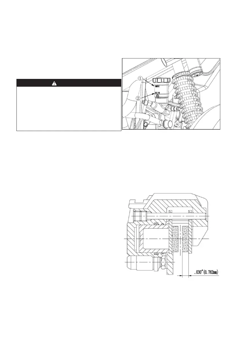 The front and rear brakes are hydraulic disc brakes. Press down on the brake pedal to engage the