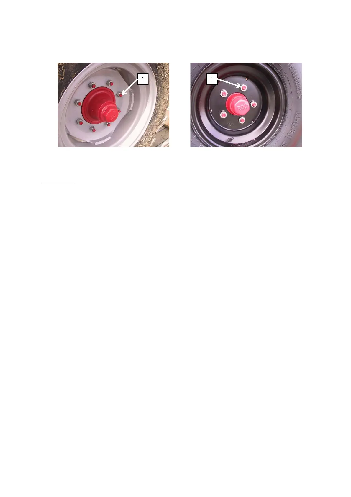 Every day you must check the wheels and tyres if the bolts are properly fastened (1).