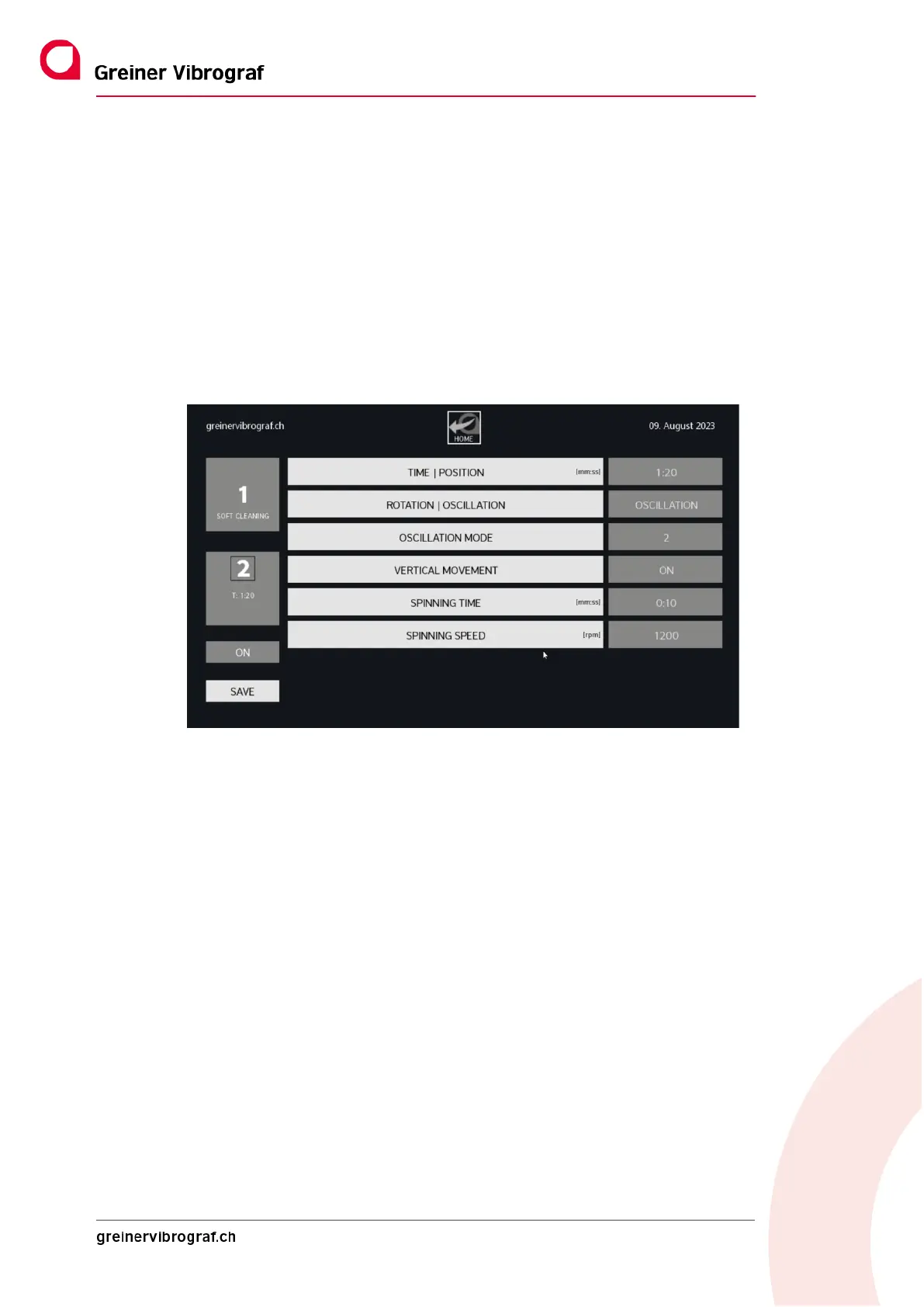SPINNING TIME Switch-on time of the SPIN drive in minutes and seconds