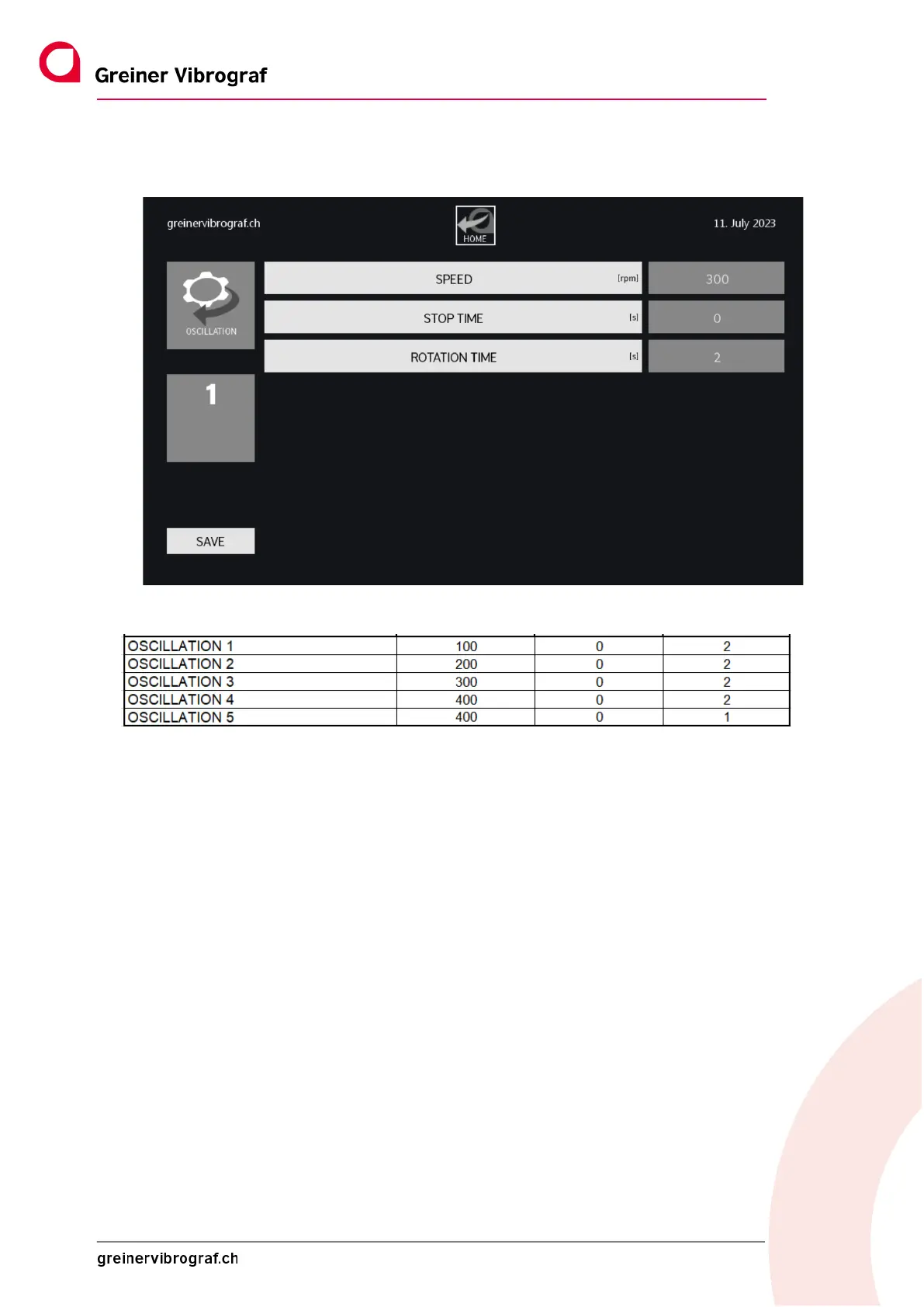 SPEED (rpm) STOP TIME (s) ROTATION TIME (s)
