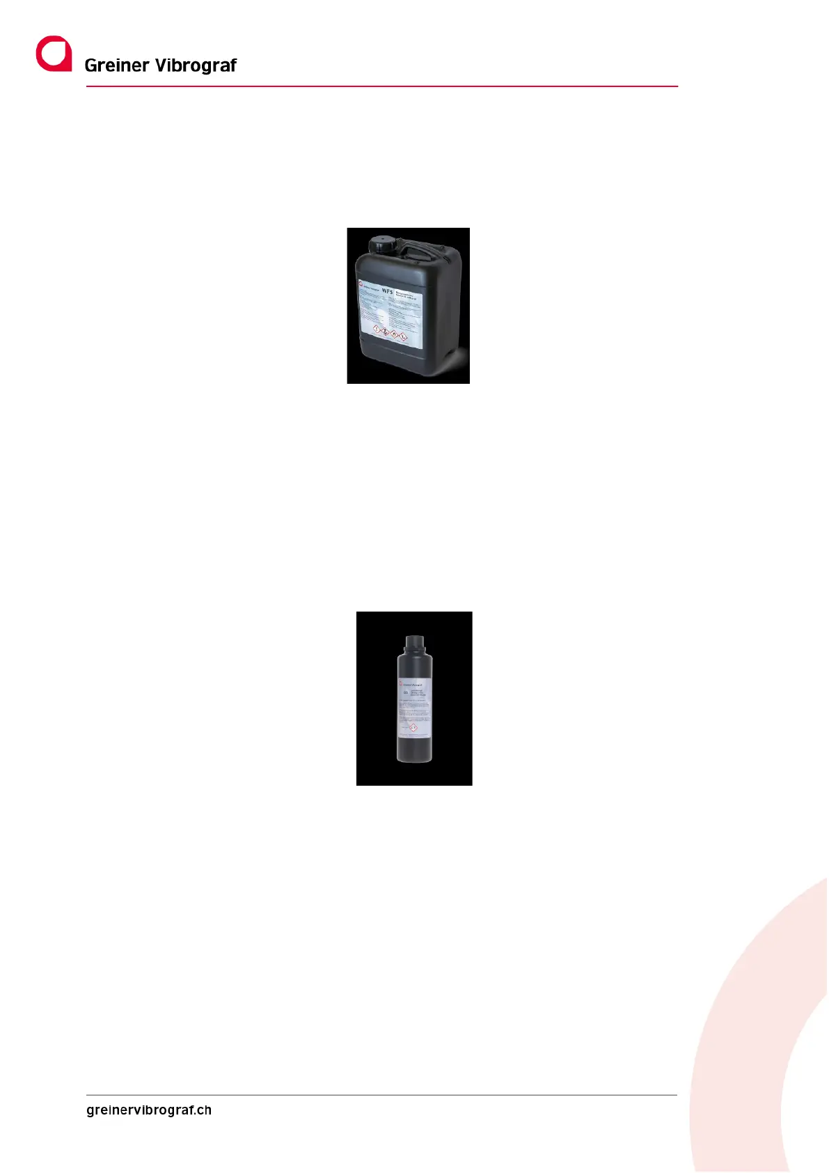 The following Original Greiner Vibrograf Cleaning Fluids are recommended for use: